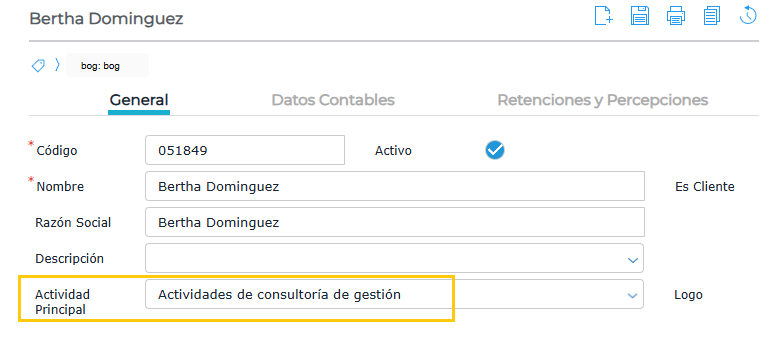 - En el caso de los proveedores, además se debe completar el campo Actividad Principal