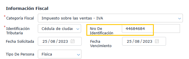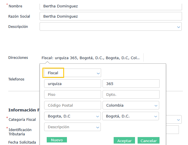 - Indicar una dirección de tipo FISCAL