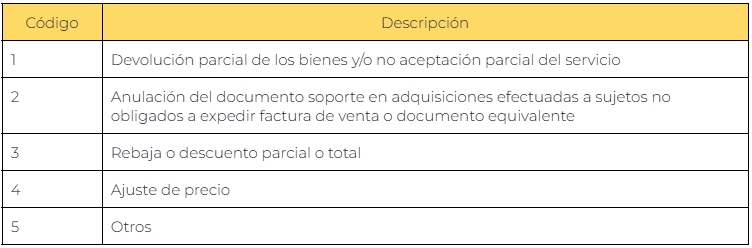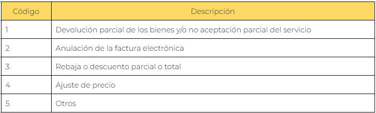 Los motivos de comprobante son utilizados en las notas de credito. Es obligatorio completarlos.