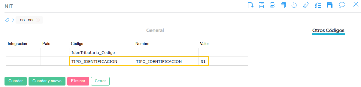 | 50 | NIT de otro país |