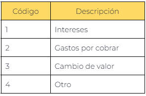 | Código | Descripción |