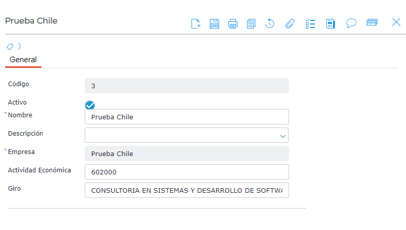 En el maestro de sucursal se deben completar los campos Actividad económica y Giro