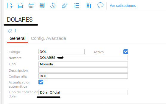Ingresar a la moneda dólar y cambiar el campo “Tipo de cotización dólar”