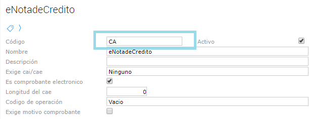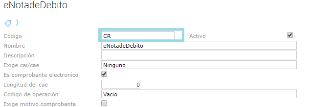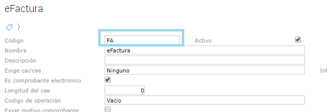 Los comprobantes tipo impositivos deben tener los siguientes códigos