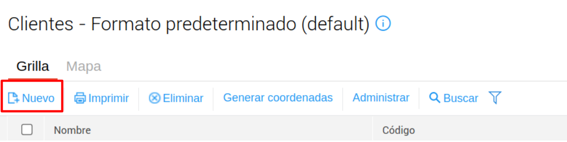 - En el maestro de clientes, hacer click en el botón Nuevo.