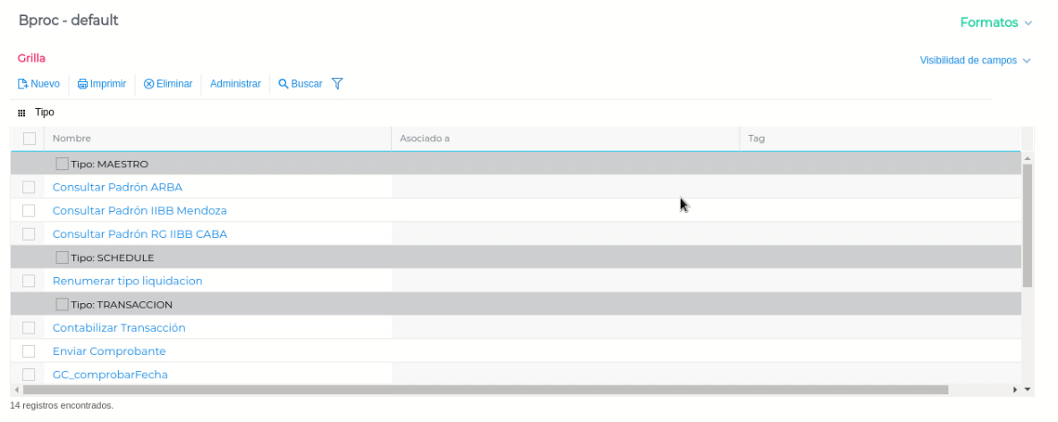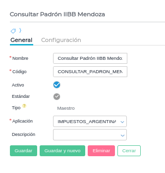 En este caso, activamos el Bproc para actualizar las alícuotas de Mendoza.