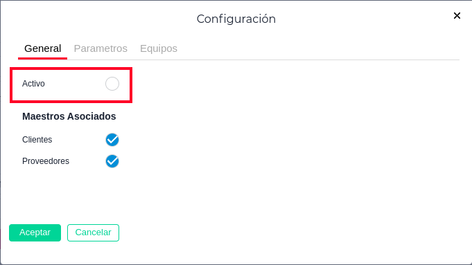 Para activar el padrón debemos hacer click en el botón , tildar la opción de Activo y luego hacer click en “Aceptar”