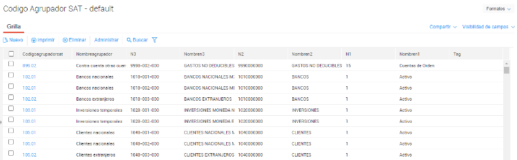 En el maestro Código Agrupador SAT se encuentran cargados los códigos.