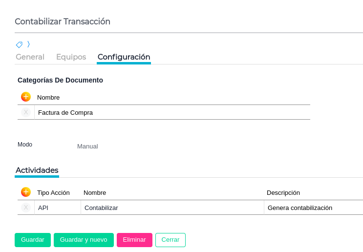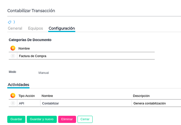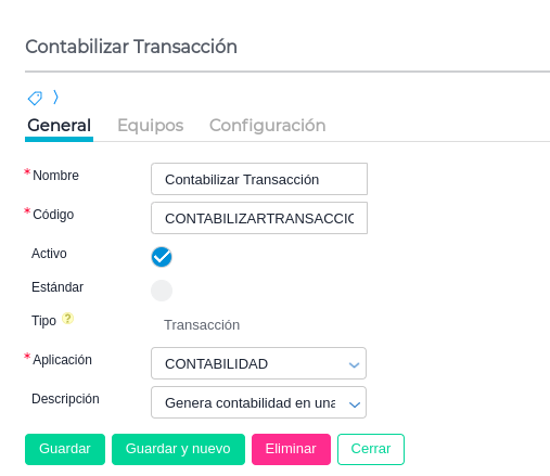 En esta solapa se debe tildar el Bproc “Contabilizar Transacción” para que quede disponible la funcionalidad desde el documento. (Debe contar con ambos tildes como en la imagen)