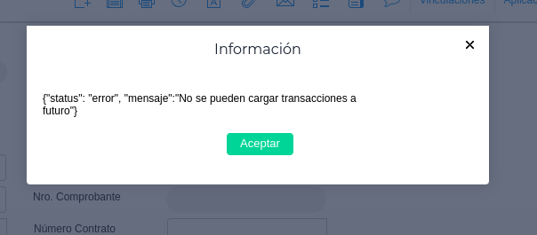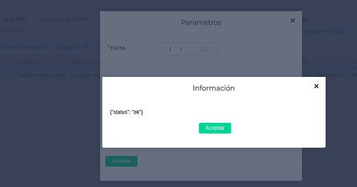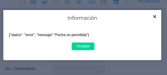 En caso que la fecha sea válida, se mostrará el siguiente mensaje, creando el asiento para el documento con la fecha indicada.