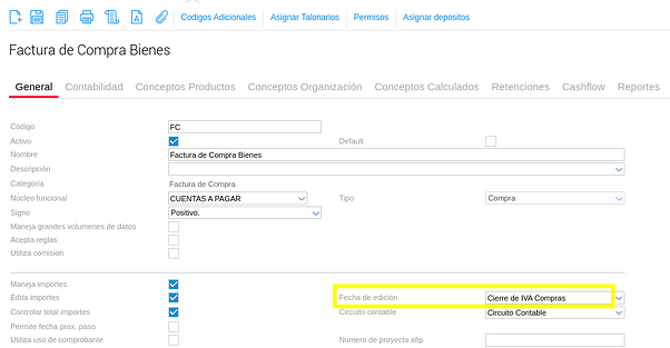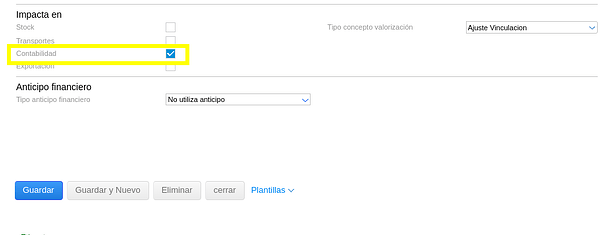 Solapa Contabilidad del tipo de documento
