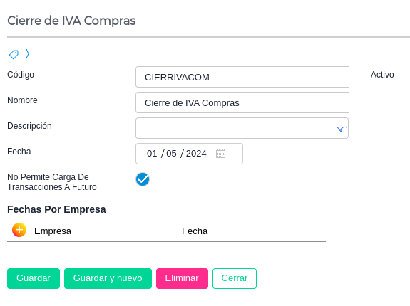 Para acceder a esta solapa se debe indicar previamente en la .solapa General que impacta en Contabilidad.