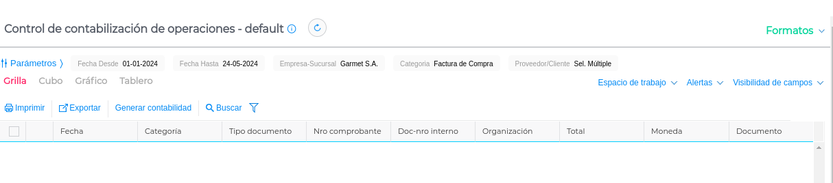 Luego al refrescar el reporte ya no quedarán visibles los documentos contabilizados: