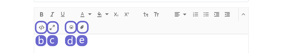 b. Opción de Formato de Vista: el símbolo “</>” habilita la vista en formato de código. Al habilitar esta opción, el texto se ve en formato de código html. Esto permite insertar código embebido para incluir documentos, imágenes, videos y más.