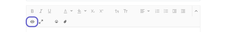 En el menú desplegado, donde antes se encontraba el botón “</>” (Code View), ahora se puede ver un botón con un ojo. Hacer click en este botón para volver a la vista en modo normal en el editor de texto.