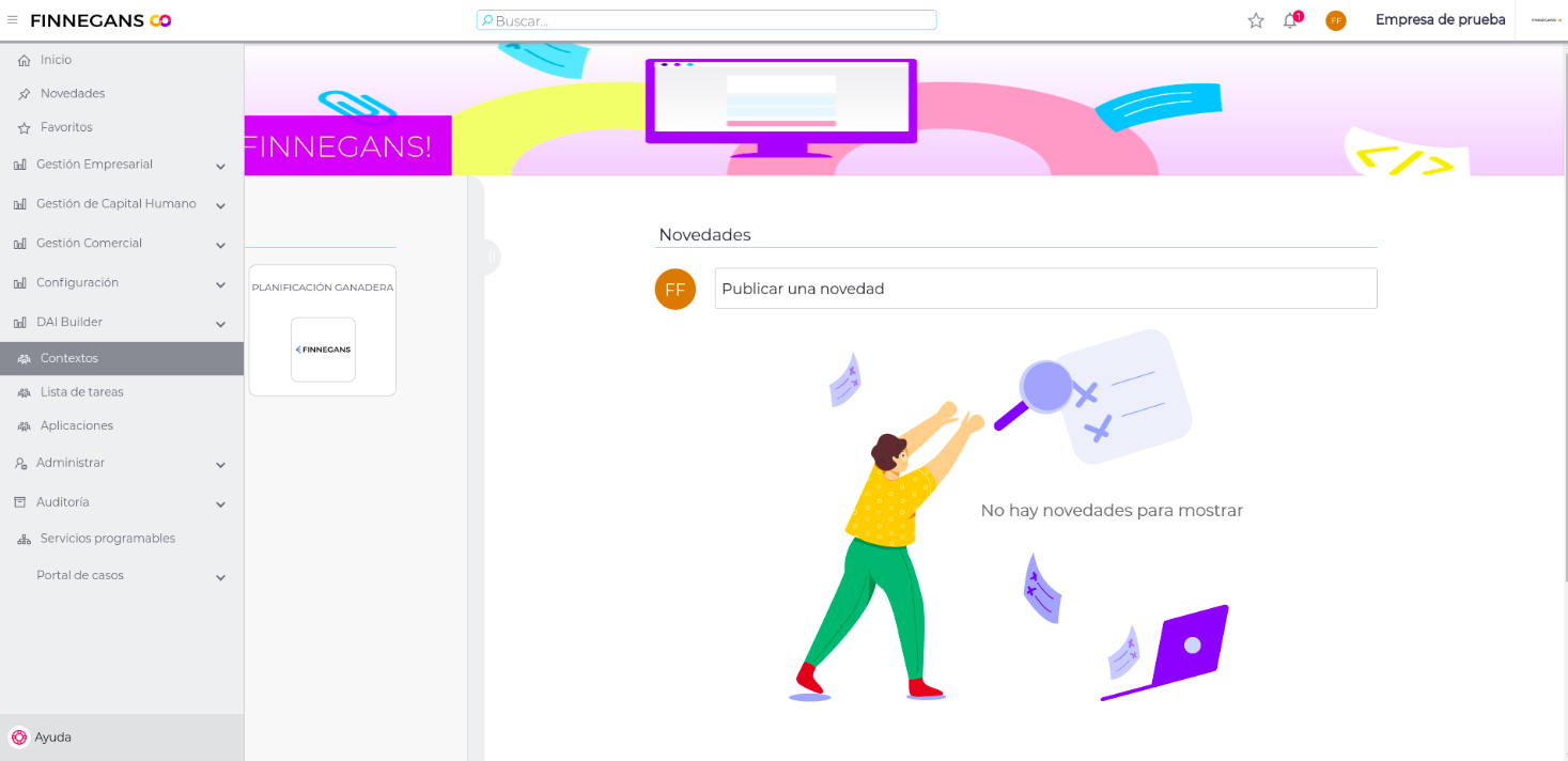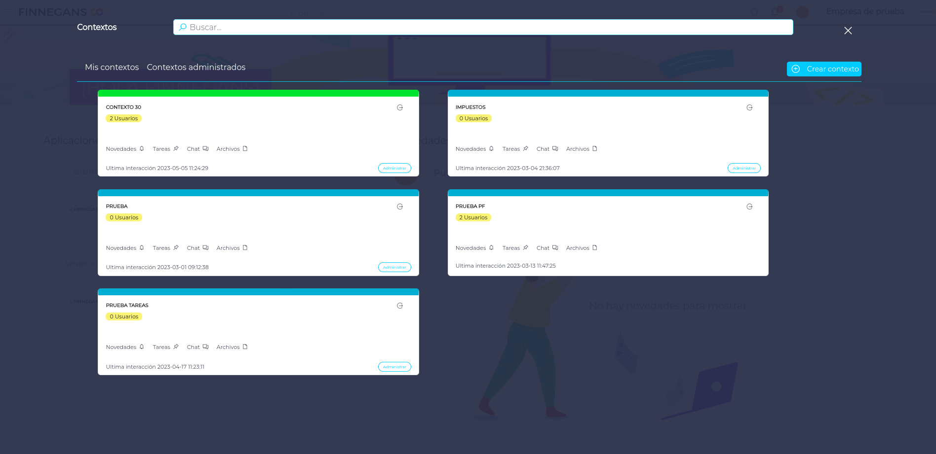 Ingresar al menú lateral de Finnegans Go y seleccionar Contextos
