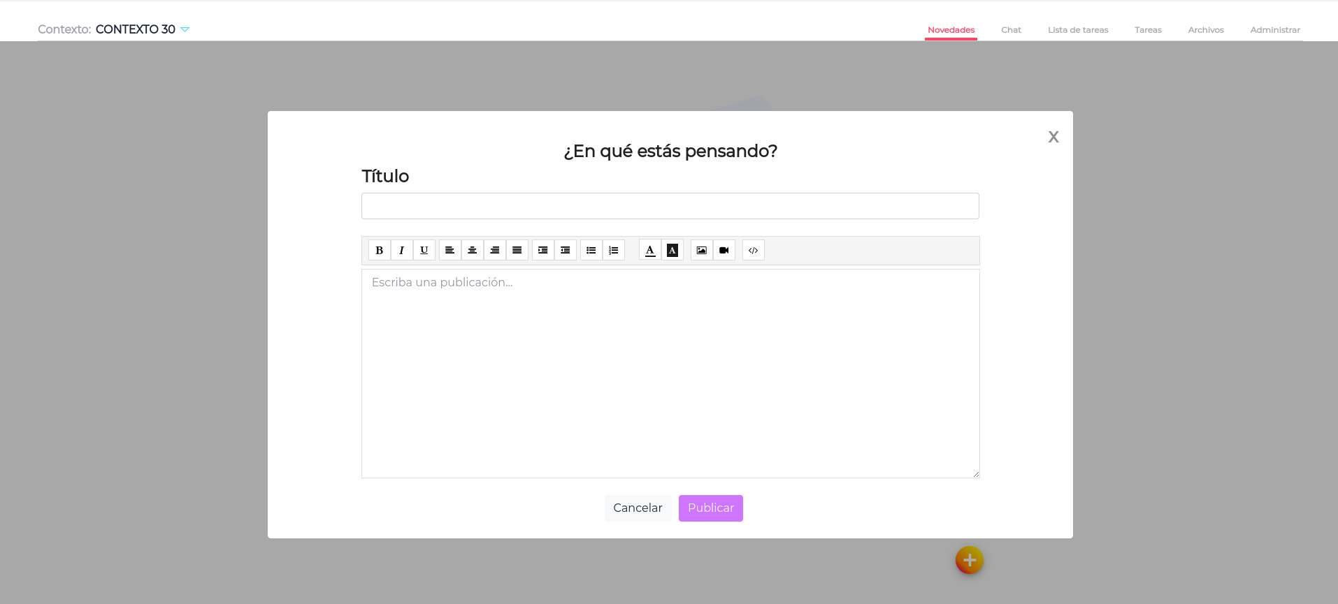Aparece el listado de los Contextos de los que se forma parte. Seleccionar el o los contextos donde se desea publicar y hacer click en Publicar.