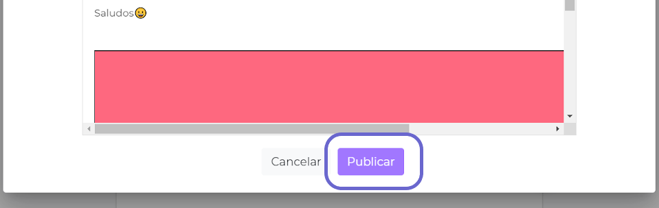 - Cuando se finalice la edición de la publicación, hacer click en Publicar.