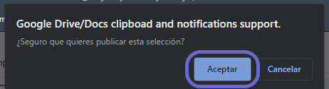 En la ventana emergente, hacer click en Publicar.
