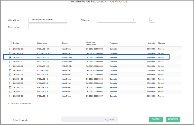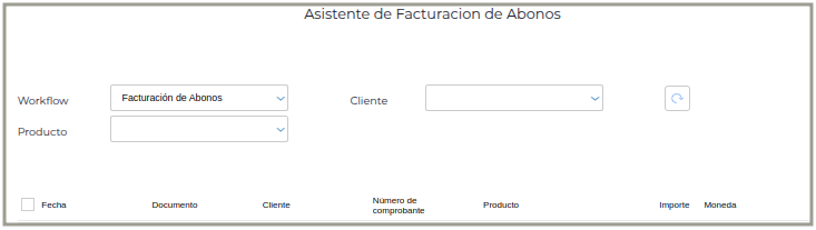 Abre el cuadro de Asistente de Facturación de Abonos.