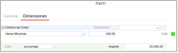 Para agregar las distribuciones correspondientes de acuerdo a la configuración de la cuenta contable del producto. Luego se presiona el botón aceptar.