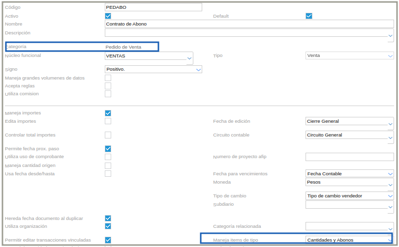 Documento de categoría: pedido de venta.