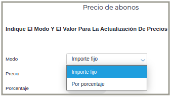 Al presionarlo, se abre una ventana donde se indica el nuevo precio. Este puede ser por importe fijo o por porcentaje.