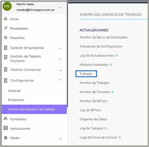 Desde: Configuración → Diseño del Espacio de Trabajos → Documentos → Relación entre Documentos (Workflows)