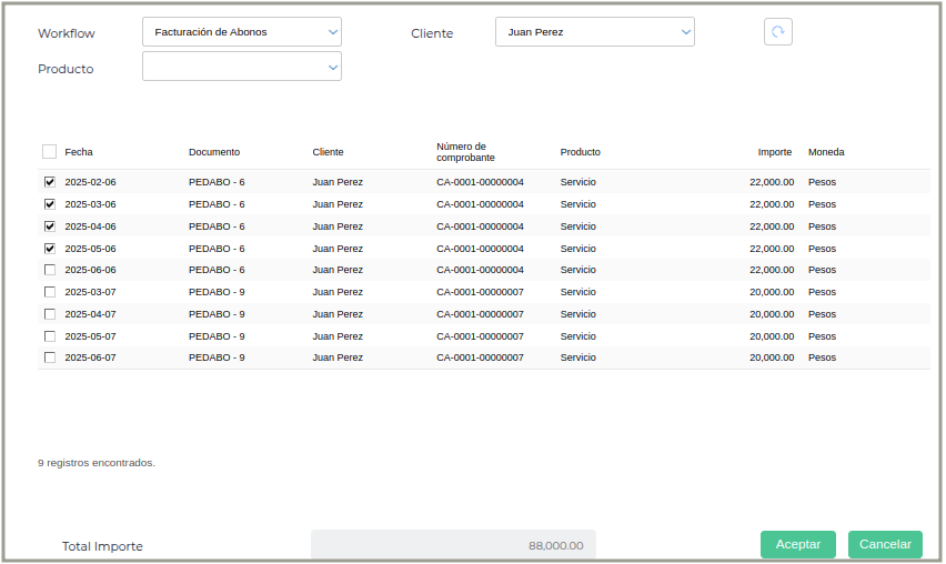 Proceso de facturación de abonos
