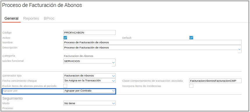 Nota: por defecto las bases están configuradas para “agrupar por contrato”