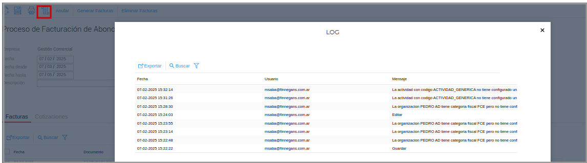 Una vez guardado el proceso, botón “Generar Facturas”