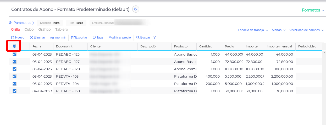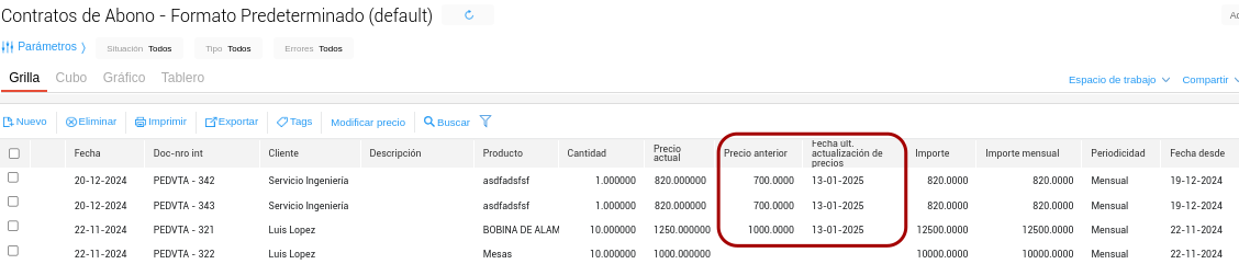 Consulta: Se requiere modificar el precio de los contratos de abono de manera masiva.