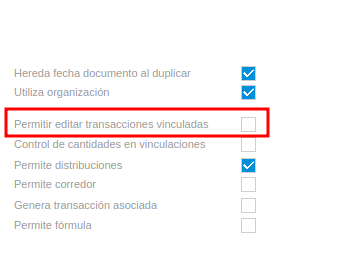 - Verificar que el parámetro “Permitir editar transacciones vinculadas” esté destildado.