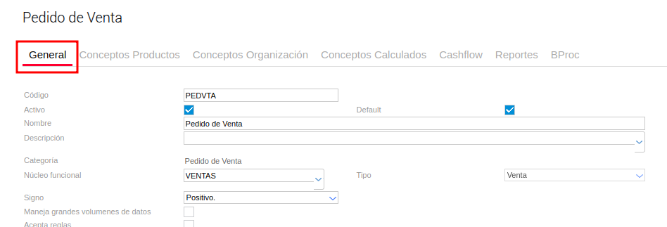 - Buscar el tipo de documento correspondiente al pedido de venta (por ejemplo,