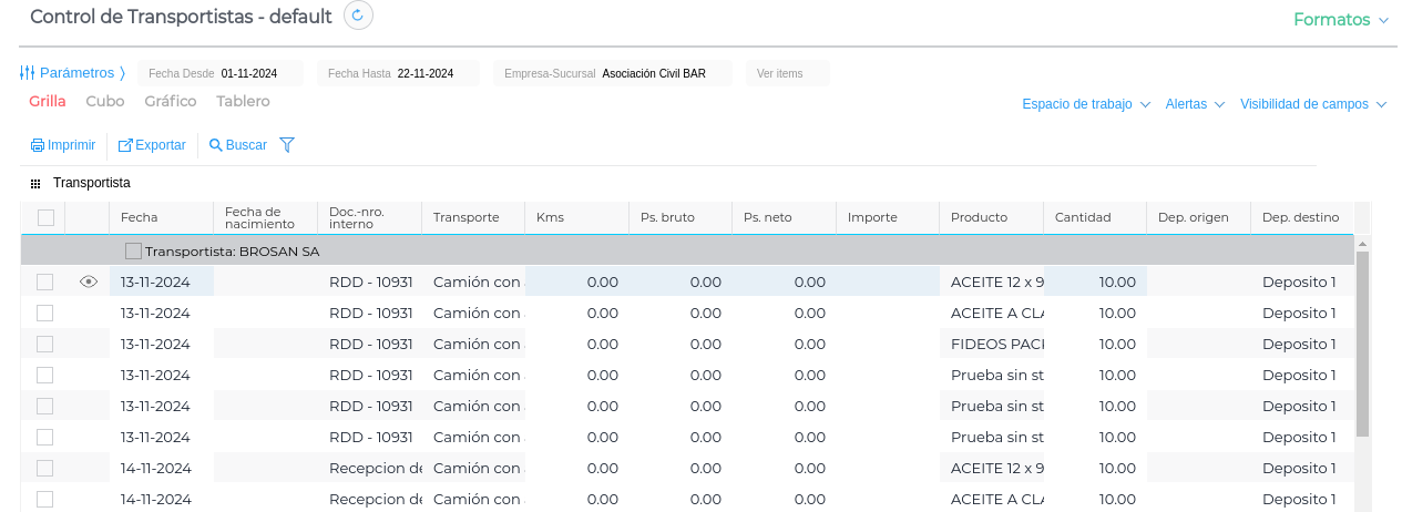 Se realizó un desarrollo en el informe “Control de Transportistas” en el que se agregaron las columnas de Cantidad de stock secundaria y Unidad secundaria.
