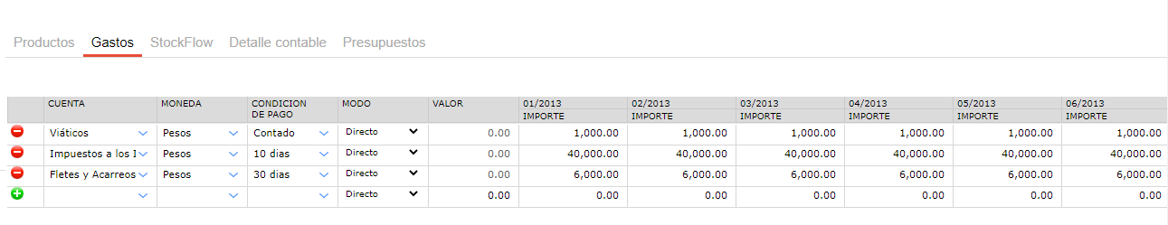 - Mes: habrá tantas columnas Mes como meses abarque el plan. Se debe completar en cada una, el importe para cada una de las cuentas que se están importando.