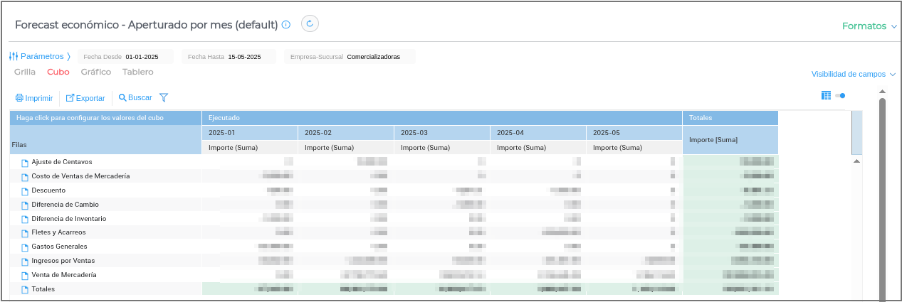 Se accede desde Menú → Gestion Empresarial → Presupuesto → Control Presupuestario → ForecastEeconómico.