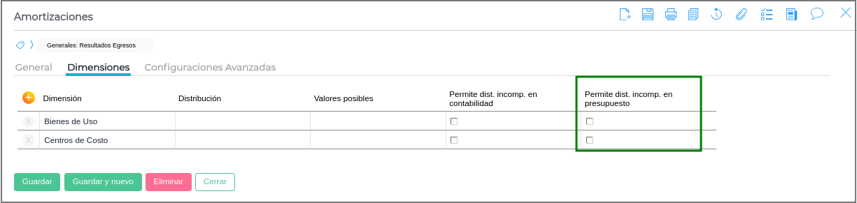Si la cuenta te pide más de una dimensión podés configurar “Permitir distribuciones incompletas en presupuesto” para las otras dimensiones.