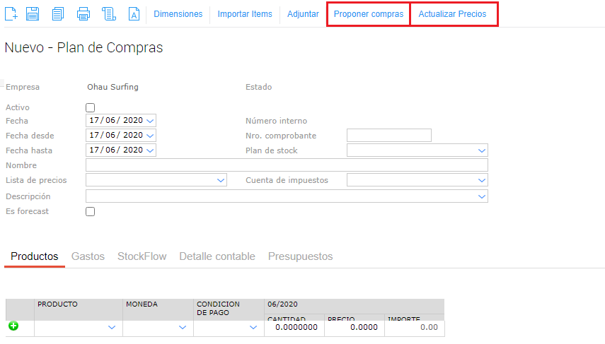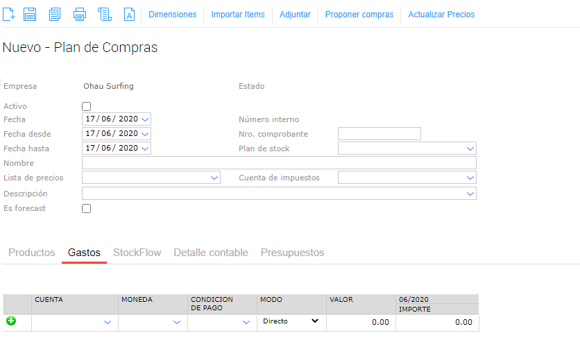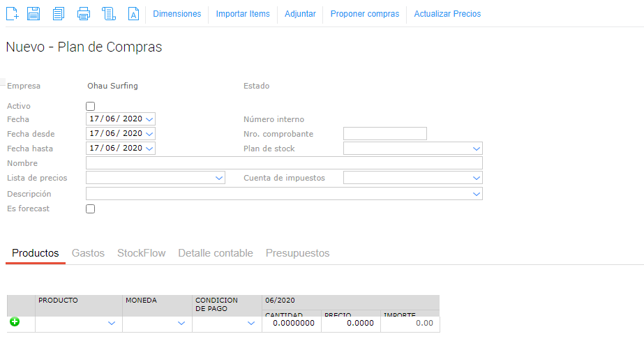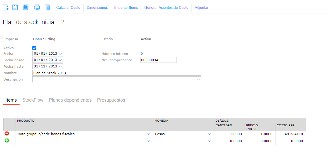 Un Plan de Stock Inicial refleja en el sistema una planificación posible de los productos para una fecha o periodo determinado. Se puede establecer la moneda, la cantidad y el precio inicial del producto.