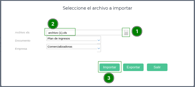 Para importar el archivo con los datos que se quieren insertar en el sistema, se debe presionar nuevamente el botón “Importar”.