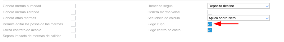 En casos de requerir el campo “Número de cupo” como obligatorio a la carga de cartas de porte en el sistema, se configura el tipo de documento para que exija cupo: