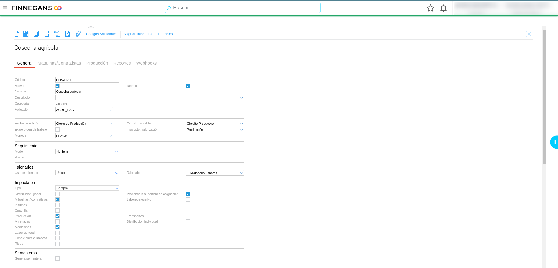 Esto sucede porque el documento de Cosecha agrícola está configurado para que utilice Moneda Default