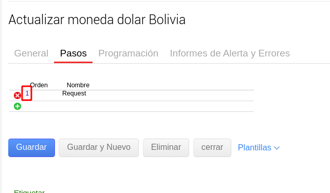 Luego, en la solapa Pasos, debemos presionar el número de orden “1” que corresponde al Request.
