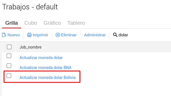 En el maestro de trabajos vamos a encontrar un trabajo llamado “Actualizar Moneda dólar Bolivia”