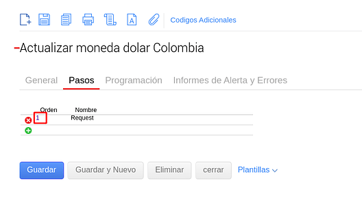 Luego, en la solapa Pasos, debemos presionar el número de orden “1” que corresponde al Request.