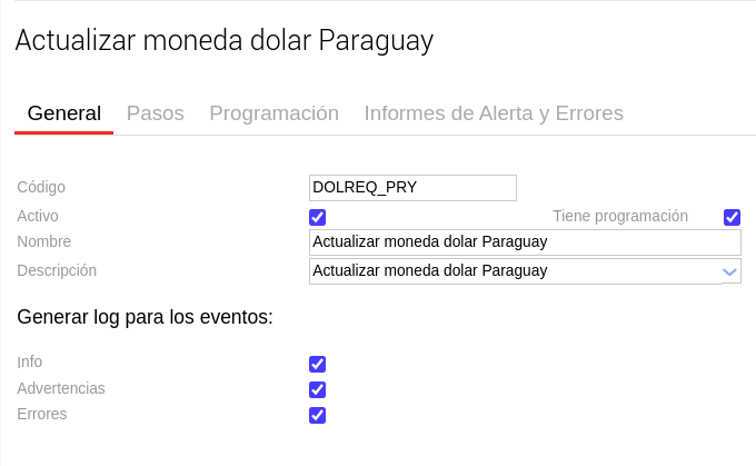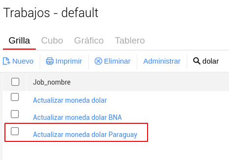 En el maestro de trabajos vamos a encontrar un trabajo llamado “Actualizar Moneda dólar Paraguay”