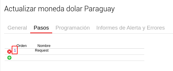Luego, en la solapa Pasos, debemos presionar el número de orden “1” que corresponde al Request.