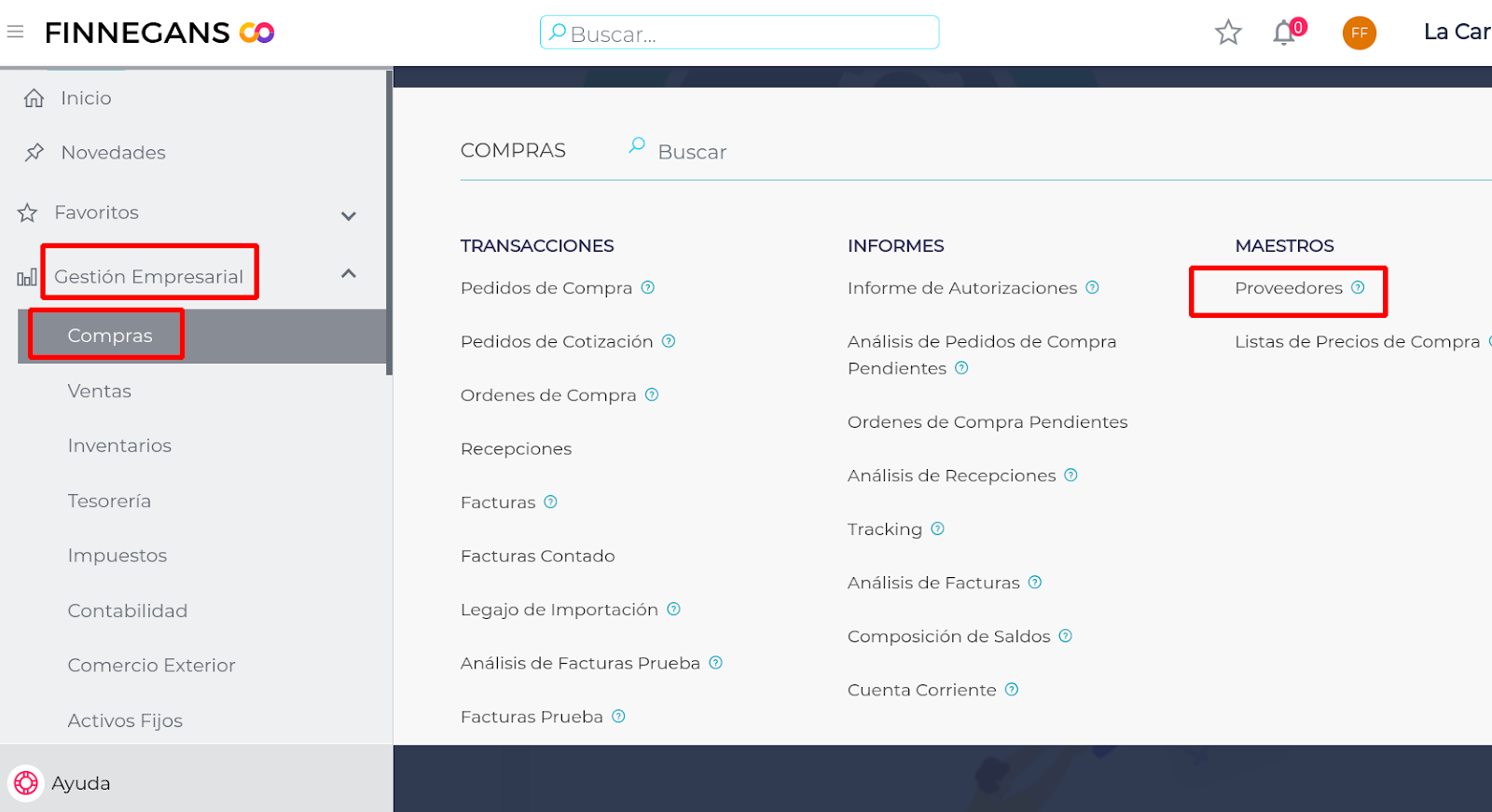 Menú -Gestión empresarial - Compras - Proveedores