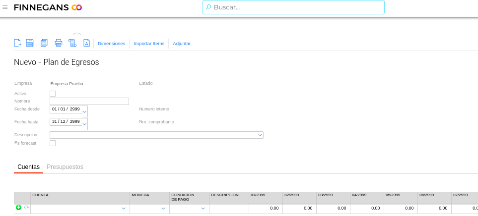 - Es forecast: requerido tildar para que sea seleccionable en Presupuestos.