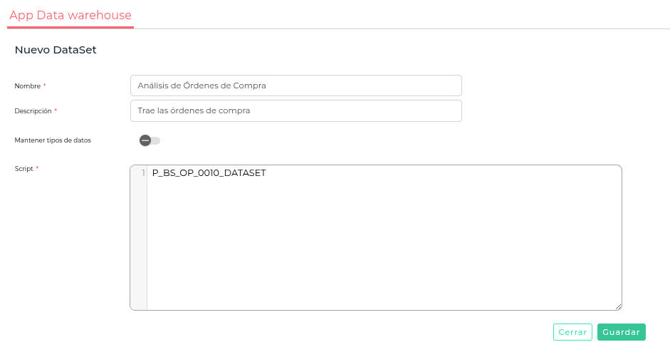 Presioná “Guardar” y listo, tu dataset está creado y preparado para conectar a tu BI.